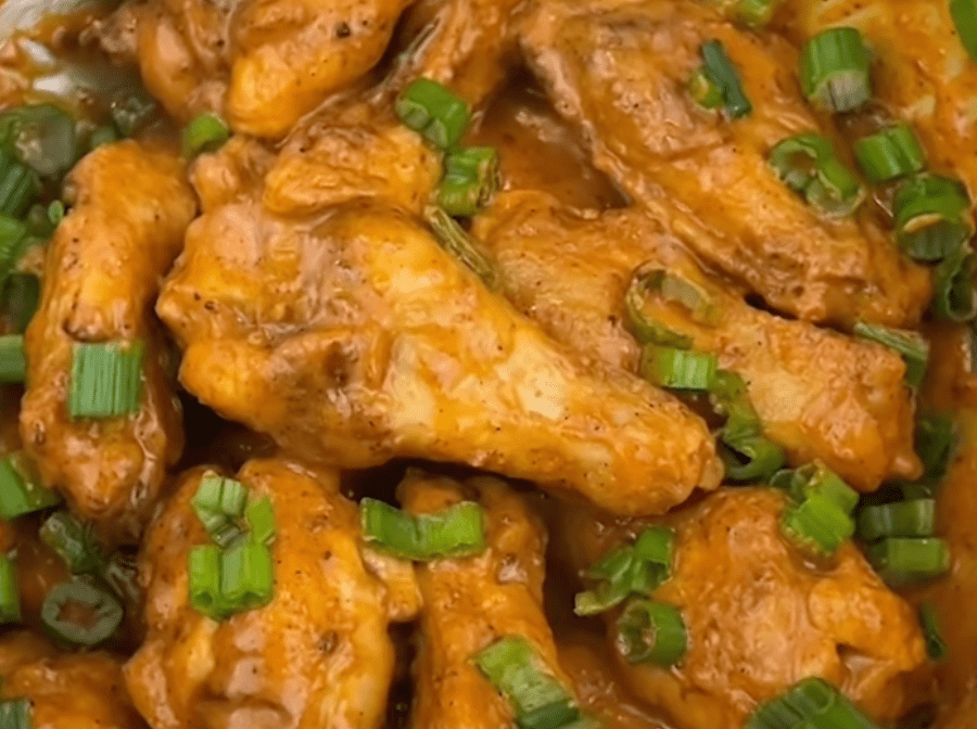 4. Place your cooked chicken wings in a bowl and pour the sauce over them. Mix well.
