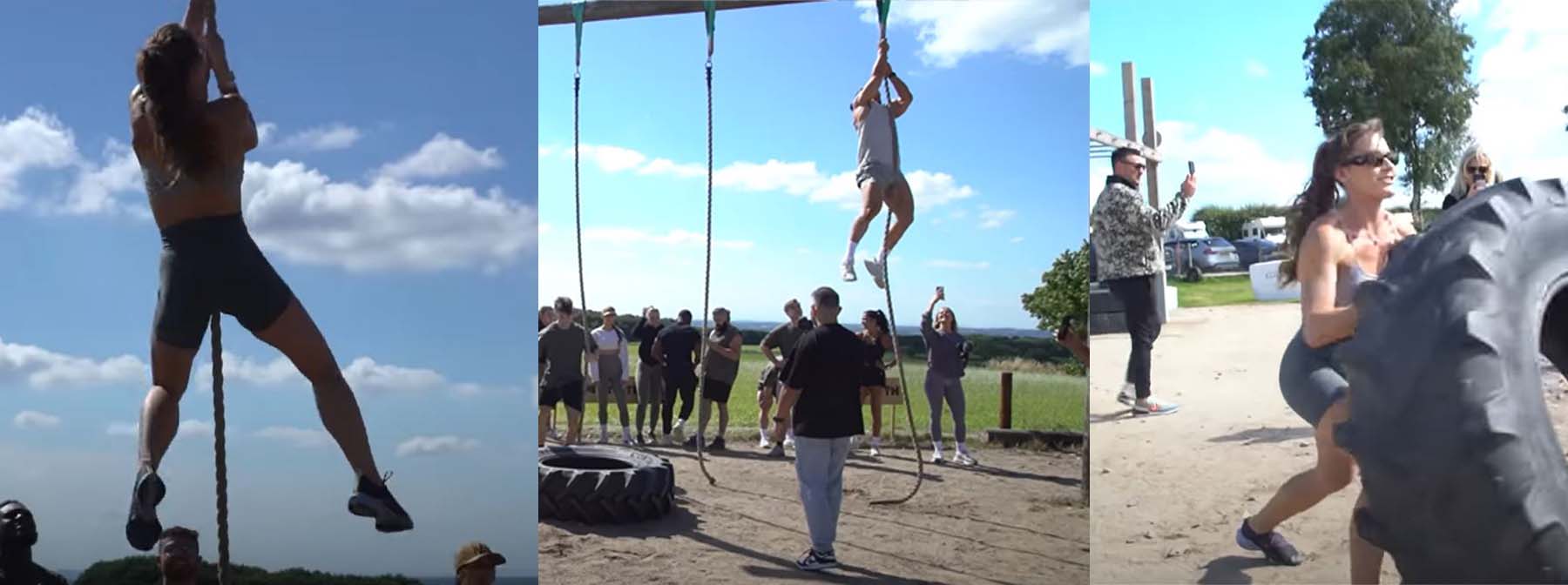 First up was the rope climb. It was absolutely grueling on their hands, and Lucy even lost a nail. That was quickly followed by box rolls, which is exactly how it sounds: rolling a box across a field. Then tire pulls, more rope climbs, more tire pulls, tire toss, and burpees with an added obstacle. Lucy was exhausted. Considering she’s an ultramarathon runner, it must have been a serious workout.
