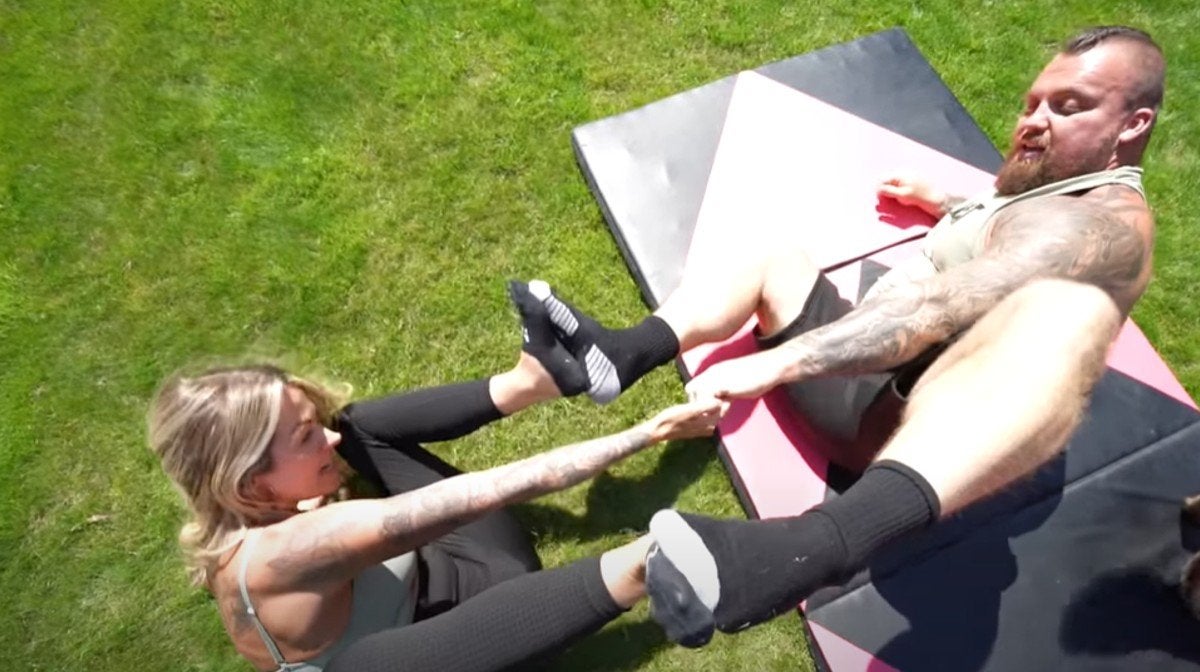 Eddie Hall usually operates alone. Whether it’s in the pool, in the ring or dominating strongman, he does it solo. So what a surprise it was to see Eddie teaming up with his wife, Alexandra Hall, to take on the couples yoga challenge. She may have been his partner, but she wasn’t feeling confident beforehand …
