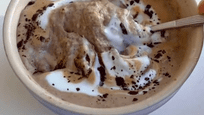 Add in nut butter and 15ml (~1 tbsp) milk.