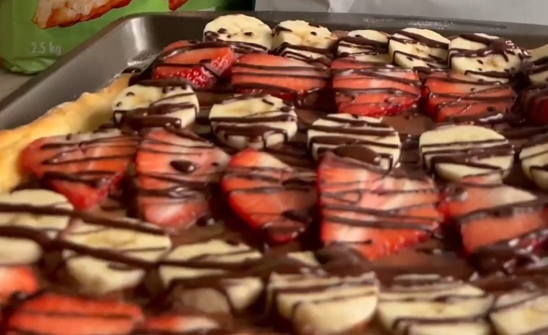 Spread your Chocolate Brownie Protein Dip onto the pizza base and top with the bananas & strawberries. Drizzle with melted chocolate before serving.