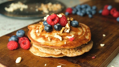 Peanut Butter Stuffed Protein Pancakes