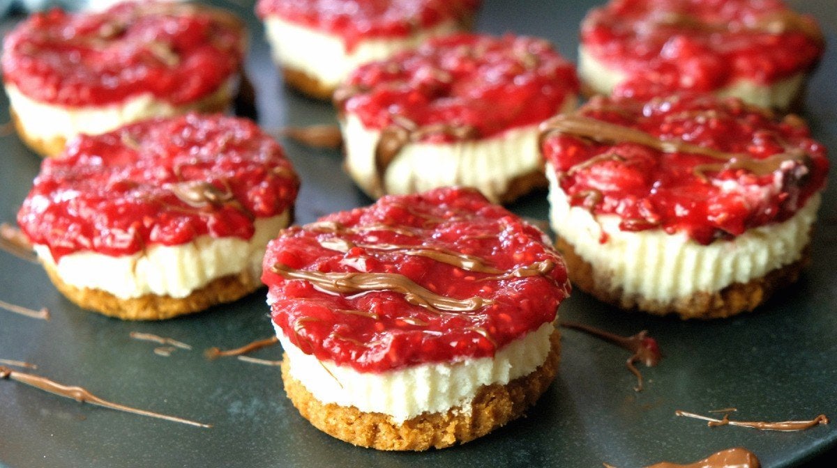 - Remove cheesecakes from oven, top with berry jam and decorate with melted chocolate hazelnut Protein Spread. Transfer to fridge and chill for at least 1 hour, then enjoy!