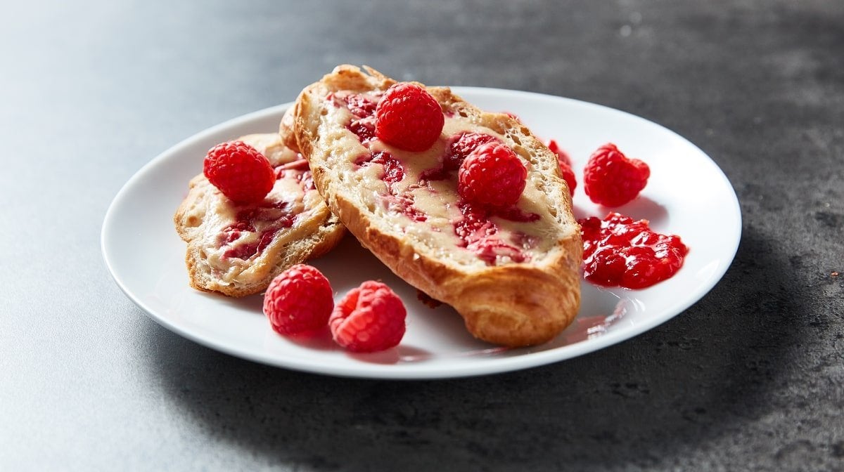 We're talking layers of flaky pastry combined with a rich, creamy filling and tart fresh raspberries. Unbeatable combination.
